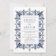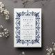 Unsere Einladung zur Hochzeit in Marrakesch ist beeindruckend schön in einer klassischen Farbkombination aus marokkanischem Blau und knusprigem Weiß. Die geometrische Grenze in Marrakesch wird durch die marokkanische Linienführung bestimmt, die Ihre Hochzeitsdetails in klassischen Serifenmustern abbildet. Karten kehren zu einem subtilen gepunkteten Diamantenmuster in Weiß auf der Marine um.