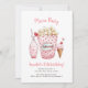 Eine wunderschöne, skurrile Party Einladung für die Geburtstagsparty Ihres Mädchens mit einem schönen Popcorn in Aquarellfarbe, Getränken und Eis und einer lustigen Hinterseite. © Mini Moi Prints