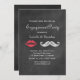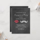 Ein lustiger Schnurrbart und Lippen, auf einem illustrierten Chalkboard Hintergrund, betonen diese Engagement Party Einladung.