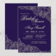 Diese Einladung mit marineblau-blauem Hintergrund hat schablonierte, blumengeschmückte Ecken und wird als Brautduscheinladung gezeigt. Es ist perfekt für jede elegante, fröhliche Feier. (<a href='http://www.freepik.com/free-vector/wedding-invitation-design_1075134.htm'>Designed by Freepik</a>). <br/>()<br/>Die Karte lässt sich einfach mit Ihrem Wortlaut, Schriftart, Schriftart und der Auswahl von sechs Papiertypen anpassen.<br/>() Nicht genau das, was Sie suchen? Alle unsere Produkte können auf Ihre Bedürfnisse zugeschnitten werden, ohne Aufpreis.<br/>() Kontaktieren Sie uns einfach unter heartfelthelper@gmail.com<br/>()<br/>Koordinierung der verfügbaren Produkte: