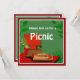 Ein grafisches Design von Picknickkorb, und Essen von Künstler/Designer Charmaine Paulson auf einer Picknickkochingeinladung. Die Einladung enthält Vorlagen für Ihre Personalisierung. ©2012charmainepaulson