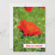 Originelles trendiges Retro-Blume-Design. Roter bunter Mohn nach dem Regen, grüner Hintergrund, Maleffekt