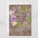 Schöne Aquarellkommunion Einladungen mit einem lila & cremefarbenen Kranz und einem goldenen Kreuz.