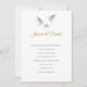 Diese Einladung wird in einem klassischen Layout auf weißem Hintergrund mit mattem Papier gezeigt. Wählen Sie Ihre Papierauswahl aus. Grafik von zwei weißen und silbergrauen Doves mit zwei goldfarbenen Ringen oben. Paare Namen in goldener Farbe hervorgehoben. Text in Silver-Graue Farbe. Passen Sie dieses Element an, indem Sie den Beispieltext nehmen und stattdessen Ihre Informationen darin einfügen. Bild auf Lager.