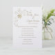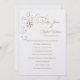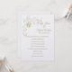 Diese Hochzeitseinladung wird in einem klassischen Layout auf einem weißen Hintergrund gezeigt, in einer Papierauswahl von Peal Shimmer. Wählen Sie Ihr Wunschpapier aus. Grafik des goldfarbenen Blütenmusters und des Weinmusters in der obersten verlassen Ecke . Couple's Names oben rechts. Text in goldener Farbe unter ihren Namen. Passen Sie dieses Element an, indem Sie den Beispieltext nehmen und stattdessen Ihre Informationen darin einfügen. Bild auf Lager.