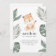 Ein süßer Aquarelltiger mit grünen Blätter an den Seiten. Ideal für Ihre Geburtstagsparty zum Thema Tiger!