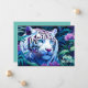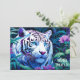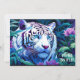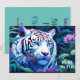 Blauer mit Augen Tiger in tropischen Blätter und violetten Blumen AI Art by minx267