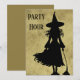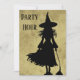 Hexe mit ihrer Besen Silhouette auf einem unsicheren Hintergrund bereit für ein Party. Verwenden Sie für Halloween Bash, Geburtstag, oder sogar eine Hexen bachelorette Einladung.