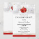 Feierliche Einladung mit Weihnachtsbaubeln im Schnee und Sternschmuck.