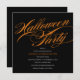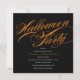 Diese moderne Halloween-Einladung besticht durch die Worte "Halloween-Party" in einer eleganten orangefarbenen Kalligrafie. Die Details zum Party werden unten angezeigt.