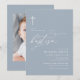 einfache Skript staubblaue benutzerdefinierte Taufkarte. Text und Farben können bearbeitet werden.