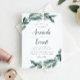 Elegante botanische Hochzeitseinladungen mit einer schicken Farbpalette von Waldgrün, schwarz und knusprig weiß. Ihre Hochzeitsdetails sind mit üppigen grünen Ästen und Blätter in einem lebendigen, bemalten Aquarell-Stil gezeichnet.