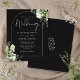 Dieses preiswerte elegante botanische Grün Blätter Hochzeitseinladung kann mit Ihren Informationen in chic Typografie personalisiert werden, mit Ihren Monogramm-Initialen auf der Rückseite auf einem staubigen schwarzen Hintergrund. Entwickelt von Thisisnotme©