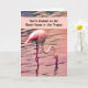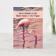 Einladungskarte für eine tropische Hütte am Strand. Das Design ist ein rosa Flamingo stehend in rosa Wasser.