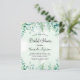Ein grüner, wasserfarbener Hintergrund mit Eukalyptusgrün und Waldfarnen. Personalisieren und fügen Sie einen Namen und Party-Details hinzu.