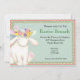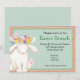 Schicken Sie Ihren Brunch Gästen diese schöne Einladung mit einem sonnigen Hase in einem Osterbonnet voller Blume. Schöne Pastellfarben perfekt für den Frühling.