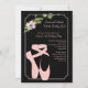 Eine schöne Einladung, die sicher ist, Applaus von Ihrer Ballerina und Gäste gleichermaßen erhalten. Der Hintergrund ist mit einem Eckenspray aus rosa Blume geschmückt, und im Rahmen des Bleistiftrahmens befinden sich rosa Zehenschuhe.Die Karte ist leicht anzupassen mit Ihrem Wortlaut, Schriftart, Schriftart Farbe und Auswahl von sechs Papiertypen.