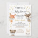 Virtuelle Baby-Dusche mit Woodland Babytieren, Bär, Fuchs, Hirsch und Hase.