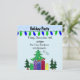 Eine angenehme Einladung, um sich für einen Urlaub oder ein Weihnachtsfest Party. Weihnachtsbäume umgeben von Geschenken und kleinen Vogelgesängen, die oben singen. Eine Reihe grüner und blauer Lichter betont den Höhepunkt der Einladung. Passen Sie Ihre Party-Informationen nach Ihren Wünschen an.