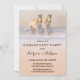 Romantische Einladung zu einer Begegnung mit zwei weißen Pferden, die im Schnee laufen.