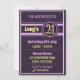 21. Geburtstag Einladung Design mit lila & gelb Text.