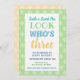 Schönes blaues, gelbes, pastellfarbenes Gelb, mit Kleeblätter-Muster, angenehme und kostenlose Farben. Großartiges Design für die Geburtstagseinladung und clevere 3. Geburtstagssprache.