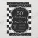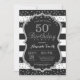 50. Geburtstag Einladung für Frauen oder Mann. Black and Silver Geburtstagsparty Einladung. Silberner Glitzer Confetti. Schwarze und weiße Streifen. Printable Digital.
