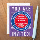 Helle Farben und kühnes Design. Die Einladungskarte des Kindes zum fünften Geburtstag. 5 Jahre alt. 5. Geburtstagsfeier Einladungen.