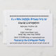 Dieses Design mit seinen festlichen Kerzen und seiner kühnen Schrift ist ein lustiger Weg, die Leute zu einem SURPRISE Geburtstagsfest einzuladen. Text auf der Rückseite der Einladung ist völlig anpassbar - auf der Vorderseite können Sie das Geburtstagsjahr und den Geburtstagsgast hinzufügen. Sie können mit verschiedenen Papiertypen experimentieren, indem Sie auf den Reiter "Einladungs-Optionen" oben rechts klicken. Dieses Design ist auf einem eisgeruhten Metallpapier zu sehen, das Ihre Einladung zu einem festlichen Schimmer und Glanz verleiht. Es stehen auch passende Briefmarke zur Verfügung.
