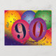 Einladungen für die 90. Geburtstagsfeier nach Karte leicht anpassen. Farbenfrohe Ballons mit regenbogenfarbenem Hintergrund und Konfetti-Dekorationen.