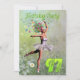Eine wunderschöne Blume-Ballerina, die auf einer Geburtstagsfeier tanzt. Die Ballerina trägt einen weißen Tutu und hat Spuren von Blume, die aus ihren Haaren kommen. Sie tanzt durch eine Wiese voller Molkereien.