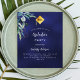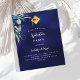 Ein marineblauer blauer Hintergrund mit Grünpflanzen. Die blaue Farbe ist ungleichmäßig. Personalisieren und fügen Sie einen Namen und Party-Details hinzu. 1 Blatt = 1 Einladung mit Druckkante bis Kante.