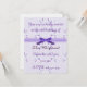 Schöne Party Einladung in einem lavendelfarbenen Design, mit einem süßen Band und Bogen Akzent. Passen Sie den Text auf der Vorder- und Rückseite dieser Karte an, um ihn zu personalisieren.