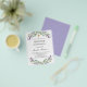 Bitte beachten Sie, dass diese Einladung auf Flyer Papier und sehr dünn ist. Umschläge sind nicht enthalten. Für dickere Einladungen (gleiche Gestaltung) besuchen Sie bitte unseren Shop. Weiß mit Lavendel-Blume und Eukalyptusgrün dekoriert. Personalisieren und einen Namen und Details. Zurück: Lavendel, violetter Hintergrund.