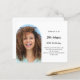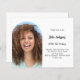 Fügen Sie Ihr eigenes Foto in vertikaler Größe hinzu. Ein bogenförmiger Rahmen aus Foto. Eine schicke, weiße Hintergrundfarbe. Personalisieren und fügen Sie einen Namen und Party-Details hinzu. 1 Blatt = 1 Einladung mit Druckkante bis Kante.