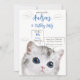 Cat Thema Geburtstag Einladung für unsere bevorstehende Feier. Kindergeburtstagsfeier mit einem niedlichen Katzenthema, mit einem weißen Kätzchen mit blauen Augen auf weißem Hintergrund. Adorable Anführungsblasen für die Anpassung Ihrer Party-Details.