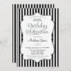 Eine elegante Geburtstagsfeier in Schwarz und Silbergrau mit schwarz-weiß Streifen und silberfarbenem Glitzer. Der Glitzer Text-Rahmen auf dieser klassischen Geburtstagsparty lädt mit einem Schatten zu einem erhöhten Aussehen ein. Diese blaugraue und silbergraue Einladung wird bestimmt den besonderen Geburtstagstern in Ihrem Leben gefallen. Perfekt für Meilenstein Geburtstage wie 18. 20. 21. 30. 35. 40. 45. 50. 55. 60. 65. 70. 75. 80. 85. 90. 95. und 100.oder jedes Alter!