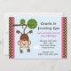 Komm mit uns! Personalisieren Sie die Einladung des Affen Geburtstagspartys, ändern Sie einfach die Details des Party und Sie sind fertig! Diese Einladung enthält einen niedlichen Affen, der an einem Baum hängt.