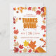 Feiern Sie die Jahreszeit mit dieser atemberaubenden Herbst-Dankfest-Einladung! Mit ihren lebendigen Herbstblättern in Rot, Orange und Gelb fängt dieses Design die Wärme der November-Versammlungen ein. Perfekt für das Event der Familie Wilson am 25. November, 17 Uhr, vereint es rustikalen Charme mit festlicher Eleganz, ideal für Familienfeiern.