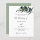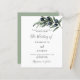 Weiß, mit Oliven und Oliven-Blätter dekoriert. Personalisieren und fügen Sie Ihre Namen und die Details. Zurück: olivgrüner Hintergrund. 1 Blatt = 1 Einladung mit Druckkante bis Kante.