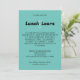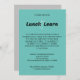 Steigern Sie Ihre Ansammlung mit diesem stilvollen Lässigen Business Lunch Invitation, das mit einer modernen Touch entworfen wurde. Die Einladung zeichnet sich durch einen erfrischenden, aquamarinen grünen Hintergrund aus, der Professionalität ausstrahlt und gleichzeitig einen entspannten Ton beibehält. Die wichtigsten Details der Veranstaltung - wie Datum, Uhrzeit und Ort - werden in einem eleganten, leicht lesbaren Schriftart präsentiert. Diese Designwahl stellt sicher, dass alle notwendigen Informationen sowohl zugänglich als auch optisch ansprechend sind. Das Einladungs-Layout ist so gestaltet, dass ein lässiges und leicht erreichbares Ambiente erhalten bleibt. Alles in allem kombiniert diese Einladung ein kühnes Farbschema mit beruflichen Designelementen und eignet sich somit ideal für ein Business-Lunch, bei dem Formalität mit einer entspannten, unterhaltsamen Atmosphäre kombiniert werden soll.