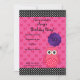 5" x 7" Einladung mit niedlichem rosa, rosafarbenem Schmetterlingsmuster Hintergrund, mit schwarzen Streifen mit weißem Polka dotiert ein lila Jakobskreis, um das Geburtstagsjahr für 1., 2., 3., 4., 5., 6., 7., 8., 9., 10, 11, 12, 13 14, 1, 15, 16, 17, 17, 17, 1, 1, 17, 1, 1, 17, 1, 1, 1, 1, 1, 1, 1, 1, 1, 1, 1, 1, 1, 1, 1, 1, 1, 1, 1, 1, 1, 1, 1, 1, 16, 1, 1, 1, 1, 1, 1, 1, 1, 1, 1, 16, 1, 16, 1, 1, 1, 1, 1, 1, 1, 1, 1, 1, 16, 1, 1, 1, 1, 9, 20, 30, 40, 50, 60, 70, 80 ,90 Eule themed Geburtstagsparty laden