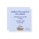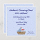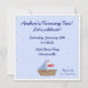 Ein kleines Holzboot mit roten, weißen und blauen Segeln schwimmt über den Boden dieser reizenden Einladung. Eine perfekte Einladung für einen Jungen jeden Alters. Einladung ist leicht anzupassen mit Ihrem Wortlaut und Schriftart.