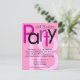 Niedliche Geburtstag-Einladung für das 18. Geburtstagsmädchen! Freuen Sie sich auf eine fröhliche Blockschrift in hellrosa und lila rosa Farbtönen, das hintere trendige Design mit schwarzem Hintergrund. Das zeitgenössische Design ist perfekt für ein Mädchen mit phantastischer Klasse und Stil. Passen Sie online Ihre Veranstaltungsdetails an.