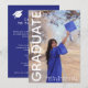 Feiern Sie einen Meilensteinmoment mit dieser modernen und stilvollen Einladung zur Abschlussfeier. Mit einem fröhlichen Absolventen in einer klassischen blauen Kappe und Robe erfasst dieses Design die Aufregung und den Stolz der Errungenschaft. Der fettgedruckte vertikale Text "GRADUATE" verleiht einen zeitgemäßen Touch, während das saubere Layout den Namen und das Abschlussjahr des Absolventen hervorhebt und so ein persönliches Gefühl vermittelt. Perfekt für die Ankündigung einer Feier der Abschlussklasse 2026, verbindet diese Einladung Eleganz mit einer lustigen, outdoor-orientierten Atmosphäre – ideal für Partys, offene Häuser oder Gartenpartys.