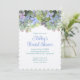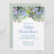 Einfache Blumendusche mit individuellen Textzeilen. Hübsche Hydrangea-Blume oben in Grün-, Blau- und Lavendeltönen auf weißem Papier mit elegantem kalligraphischen Schriftart. Ändern Sie einfach den Wortlaut in einem großen Absatz, einschließlich der Speicherung von Registrierungsinformationen. Umgekehrt ist die schlanke grüne Farbe und die Klammer-Form ist optional.