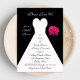 Ein modernes, weißes Brautkleid und rosa Rosen auf schwarz sorgen für eine atemberaubende Braudusche. Copyright henishouseuse paper