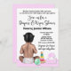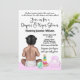 Windeln Baby Dusche Einladung mit süßem Mädchen mit Spielzeug auf einem niedlich rosa Punkt Hintergrund.
