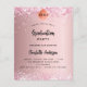 Hintergrund mit rosafarbenem Farbverlauf. Mit rosa Imitaten Glitzer, Konfetti dekoriert. Personalisieren und fügen Sie einen Namen und Details. Der Name wird mit einem handgeschriebenen Styleskript geschrieben 1 Blatt = 1 Einladung