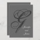 Extravagantes Script Gray auf Gray Hochzeit Einladung mit Monogram Initial "G". Design von Elke Clarke ©2008. Passen Sie Ihre Monogramme, Namen und Hochzeitsfarben an. Fügen Sie alle Ihre Hochzeitsinformationen auf der Rückseite der Karte mit Zazzle's einfach zu bedienenden Menüaufforderungen. Kommt mit weißem Umschlag. Match Zubehör im Lager erhältlich.
